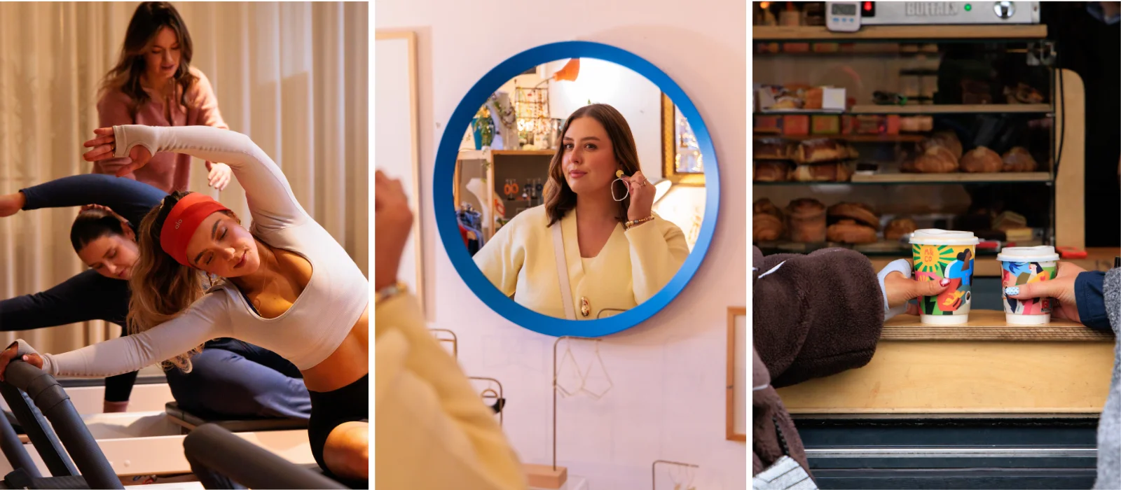 Dearbhla and Emily head to Bolands Mills for a late morning reformer pilates class in Reformation’s newest location. “We are huge fans of their Ranelagh location, so we had to try it out,” notes Emily. Decorated in earthy tones with pops of blush pink, the studio is warm and welcoming as Annie Kirwan puts them through their paces. After a stretch, the pair opt for a little pampering, making the quick pit stop at Don’t Kill My Vibe creative hair salon for a blow dry.