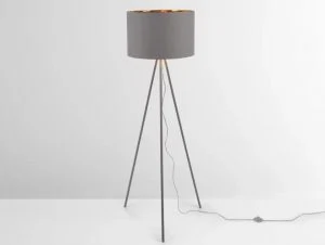 This grey and brass floor lamp is an elegant and restrained design that won’t overpower existing decor.