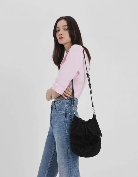 Black crochet drawstring bucket bag, €59 at Charles & Keith