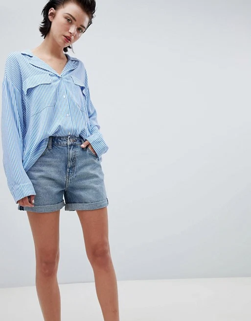 Weekday boyfriend shorts with rolled hem in week blue, €48.39 at Asos