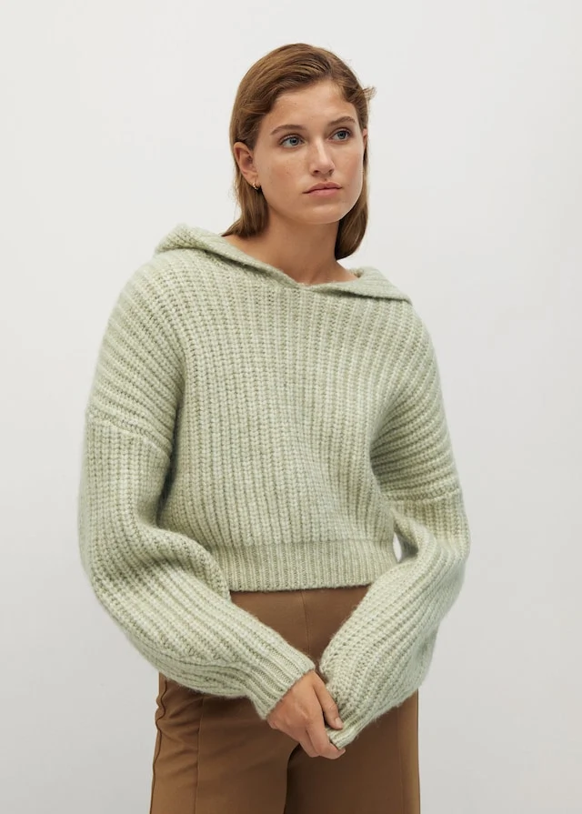 Hooded knit sweater, €49.99 from Mango