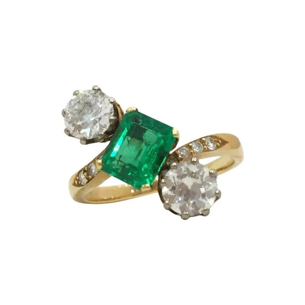 Antique Victorian emerald and diamond diagonal ring, €15,031.29 from Open for Vintage