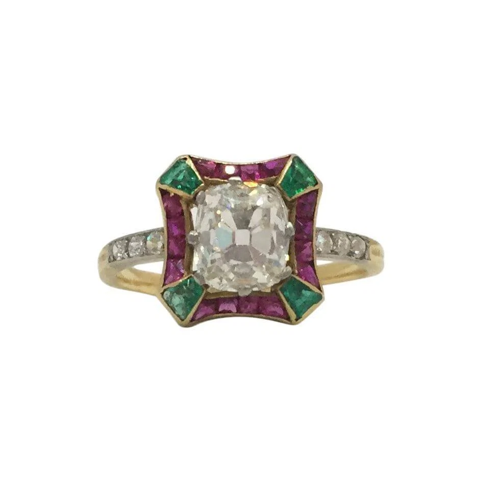 Antique Edwardian diamond, emerald & ruby ring, €11,857.40 from Open for Vintage