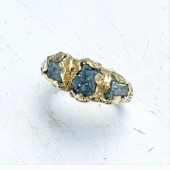 Raw blue diamond engagement ring with 18ct yellow gold, €2,175 from Janice Byrne Goldsmith on Etsy