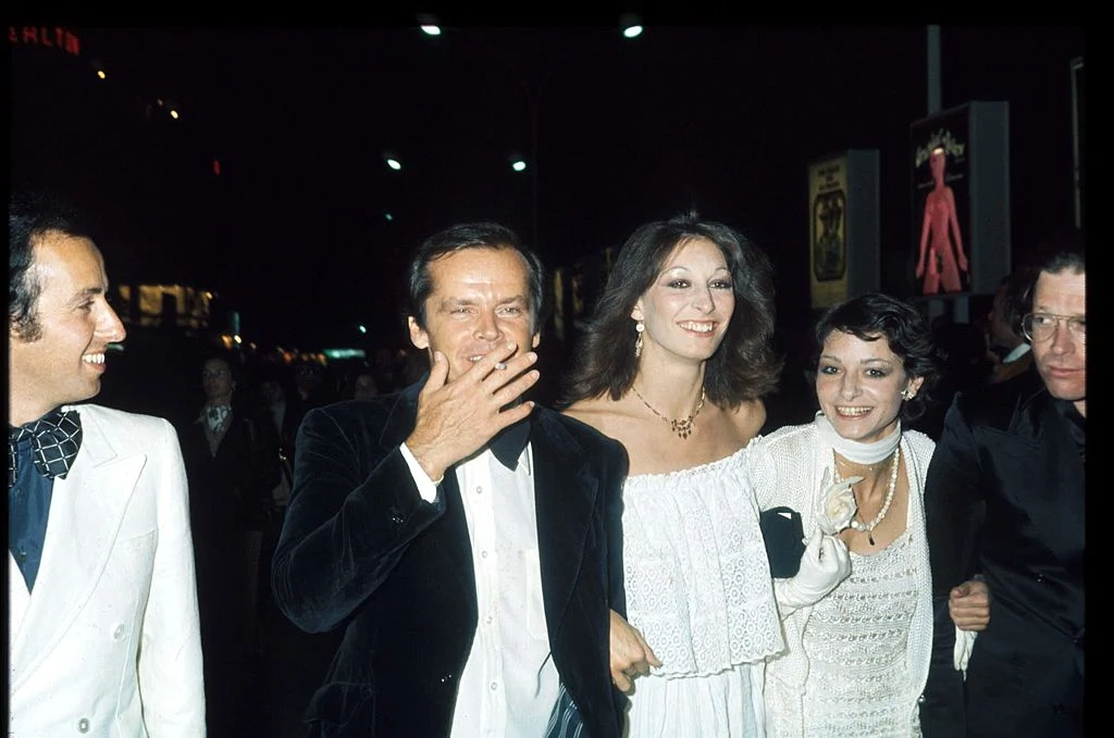 Jack Nicholson stands with Anjelica Huston at the Cannes Film Festival May, 1974 in Cannes, France. Nicholson won the festival’s Best Actor award for his performance as a military policeman in the film The Last Detail.?These two took up many column inches in those days.