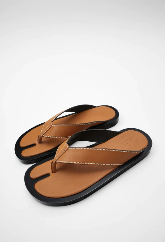 Flat sandals with topstitching, €39.95 from Zara