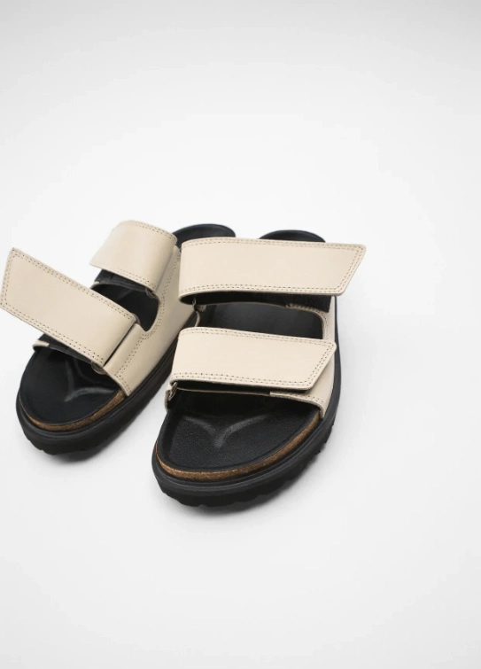 Double-strap flat leather sandals, €49.95 from Zara