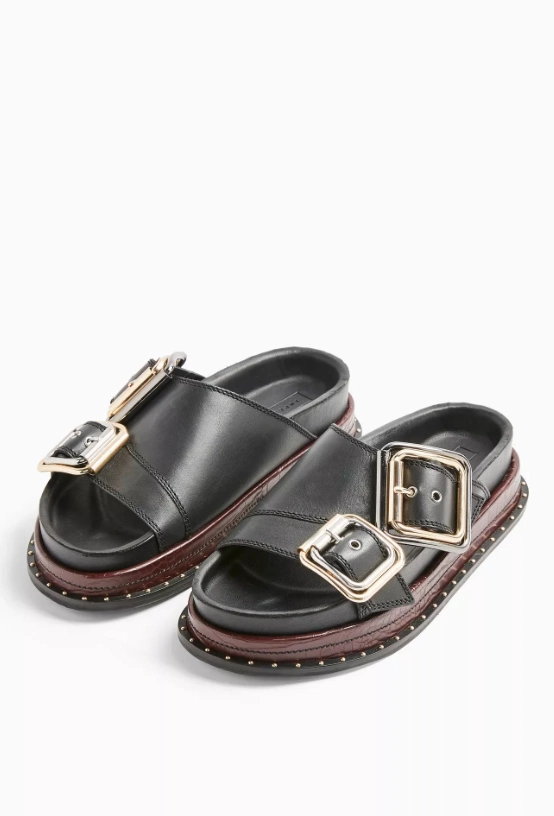 PIA black buckle footbed sandals, now €55 from Topshop