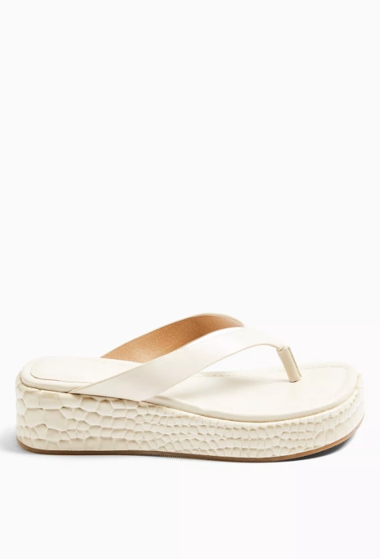PEARLA ecru flip flop wedge mules, now €34 from Topshop