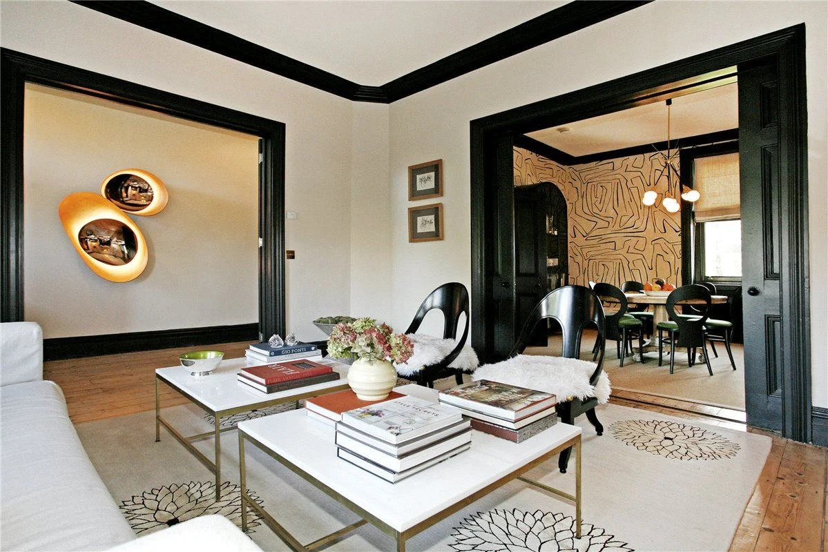 Inside, the period detail continues, with features such as high ceilings, intricate cornicing and architraves at each doorway. While these traditional details add character, the house is also quite modern. Its current owners have restored and redecorated each room in recent years, bringing inspiration from New York.