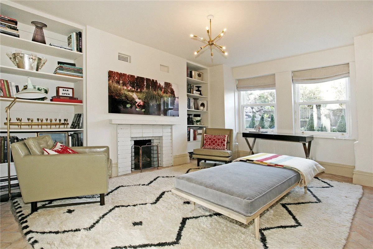 The terraced home sits at the end of a long pathway and up a short flight of steps. Its exterior oozes period charm, with notable features including sash windows and a high, pitched roof.