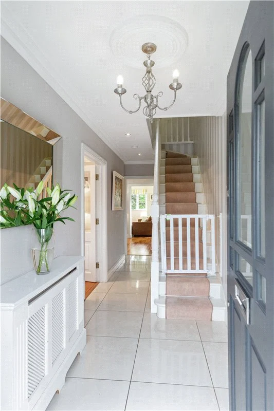 Presented in turn-key condition, this detached home opens into a long entrance hallway, which has white tiled flooring, ceiling coving, under-stairs storage and a guest WC.