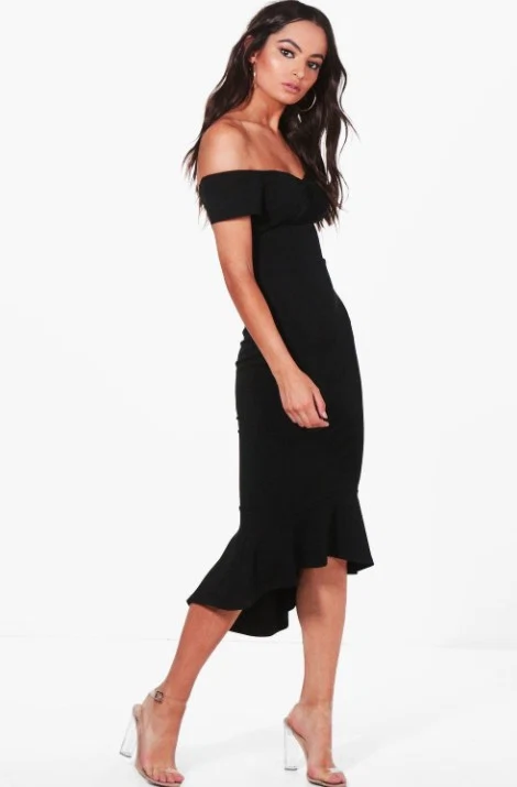 Elsie Off The Shoulder Frill Hem Midi Dress, Boohoo, ?27