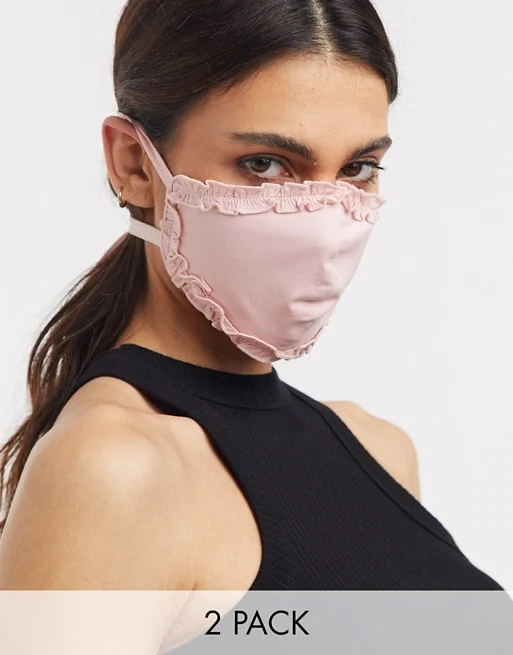 ASOS DESIGN 2 pack gingham and plain pastel frill face covering, €16.99 from ASOS