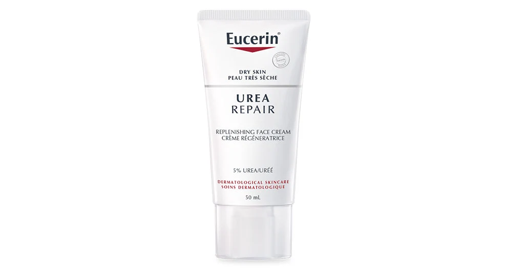 The Eucerin UreaRepair Replenishing Face Cream, enhanced with 5% urea, is recommended for use under make-up or after shaving.