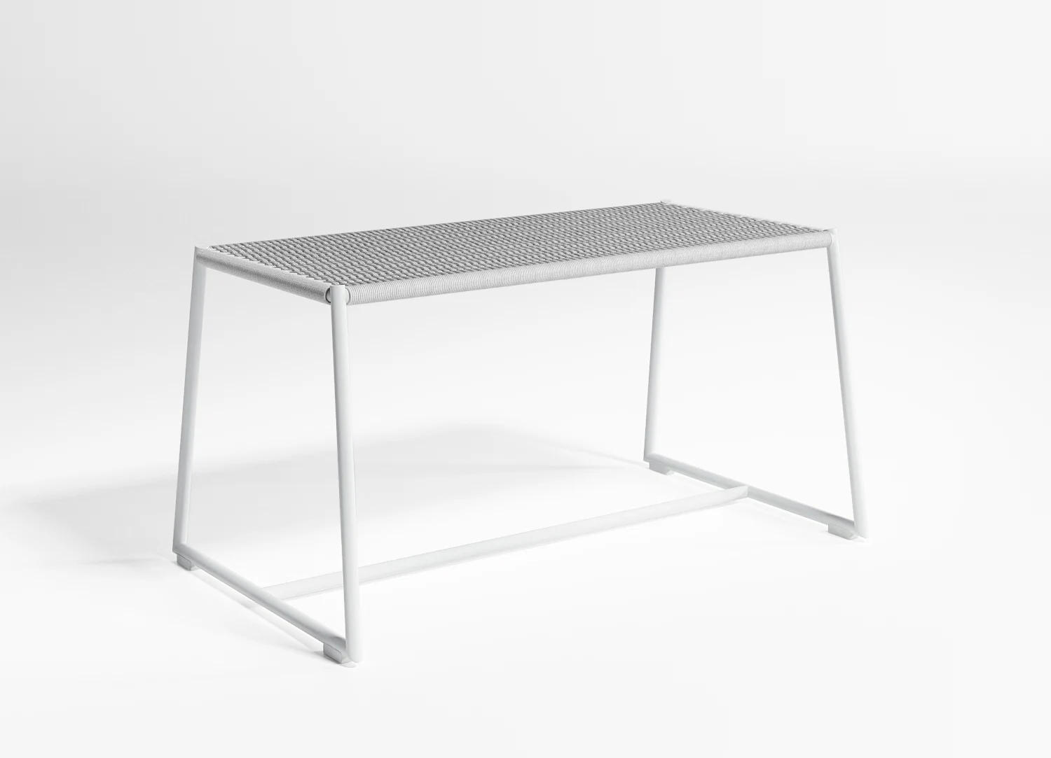 2. Clinical but comfortable, the Tituna designer bench is made with a zinc-plated, thermo-lacquered steel tube structure with polyester cord and available in different neutral colours. Design by Mariana Lerma for Gandiablasco. Available through Lomi.
