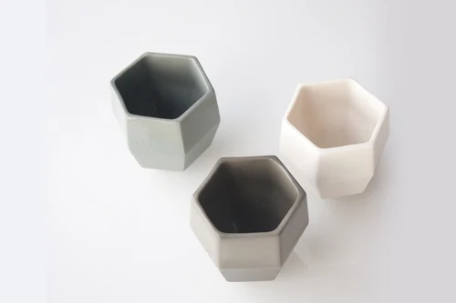 Try it in pastel hues to soften its strong angular forms, or pair it with metallics for a cool industrial touch. Hexagons also work great in vases, as they contrast beautifully against the flowing?organic blooms.