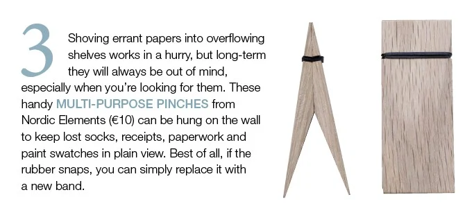 2 Clothes – clean, dirty, colours, whites, delicates and knits – are usually a utility area’s biggest eyesore. Rather than scrutinising everything with a sniff, use baskets to keep your to-iron pile away from the to-wash pile. You don’t have to settle for unsightly plastic ones either, Littlewoods Ireland, Industry & Co and Muuto have options in palm leaf, wire and felt, which will keep things chic, as well as tidy.