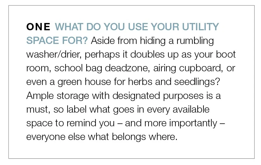 Finding a home for every item in your house is an impossible task, but a well-organised utility can go a long way to clearing some much-needed physical and mental space. Start by asking yourself a simple question.