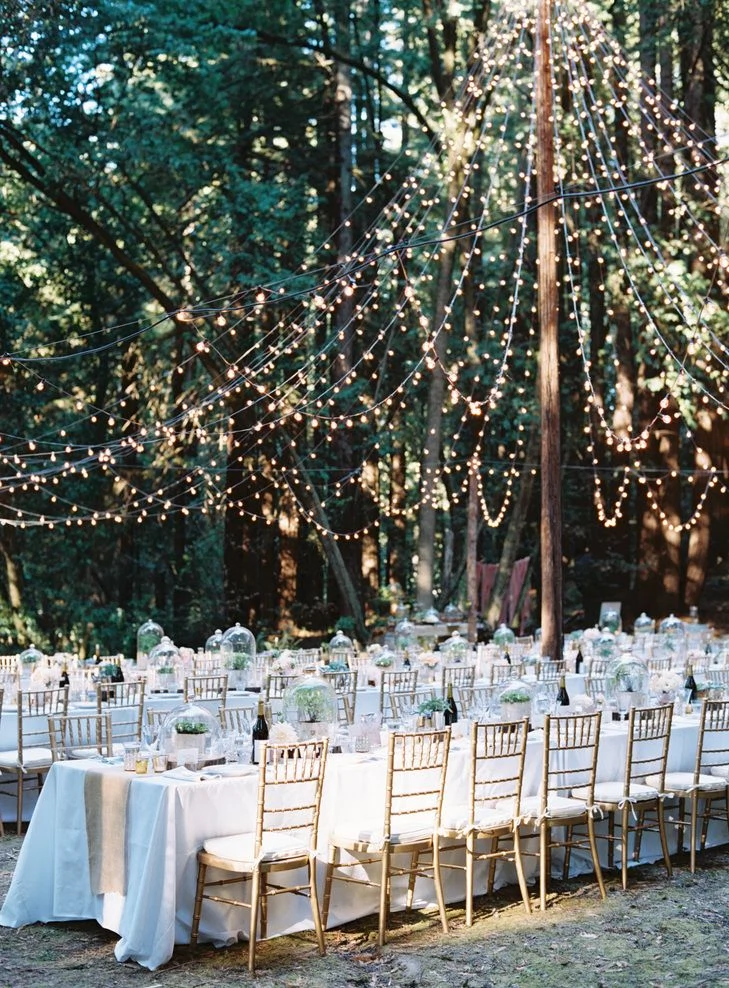 Simple and elegant lighting makes a multitude of difference and adds that romantic glow perfect for your into-the-night reception. And these are solar-powered which means they are fuss-free.