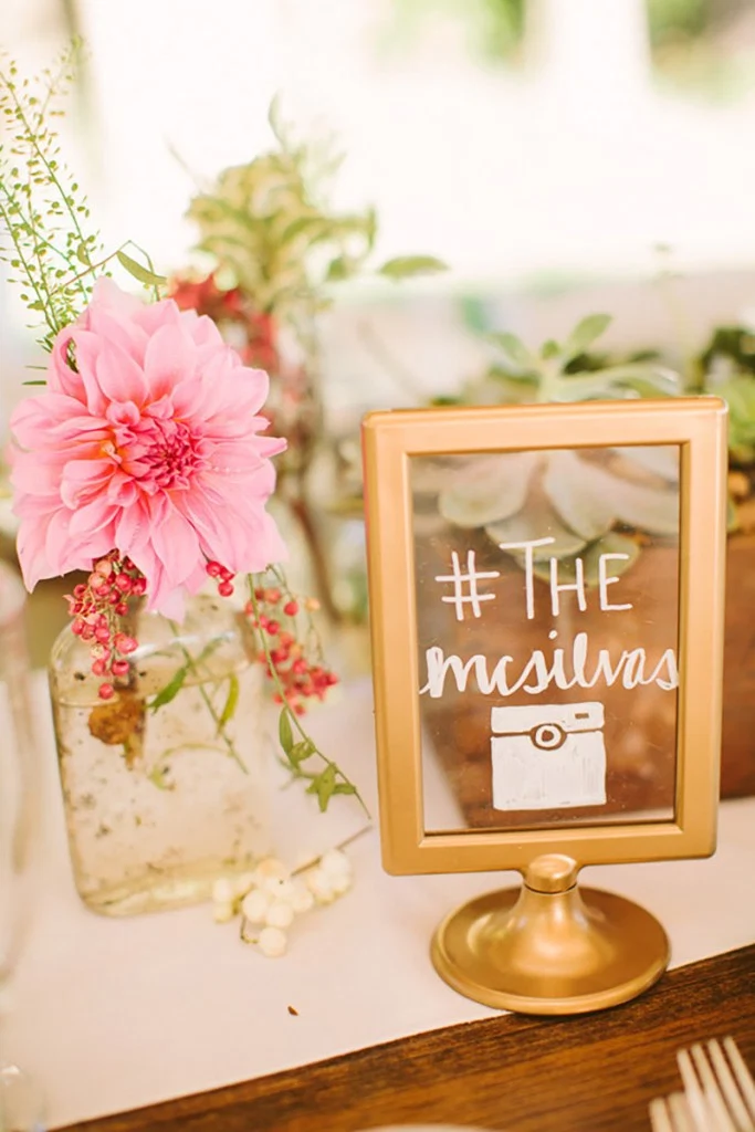 I was at a wedding recently and a frame formed the centrepiece of the table – and did so beautifully. ?A little spray paint and calligraphy and you’re all set.