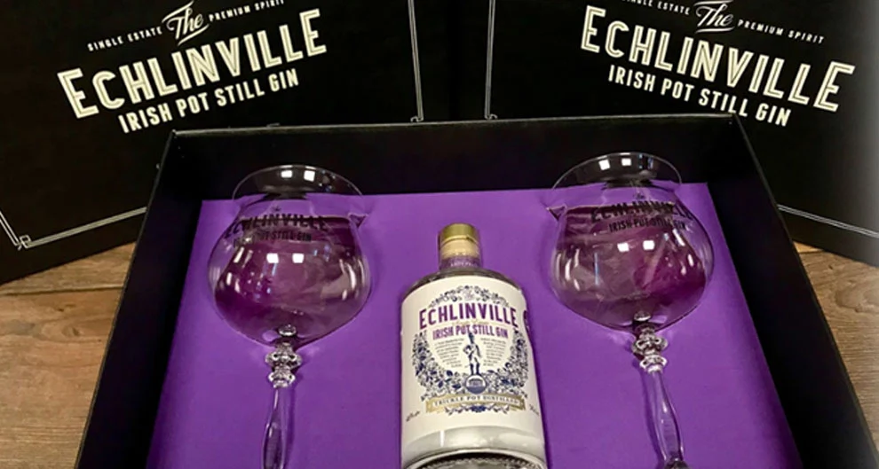 Echlinville is a grain to glass sustainable gin brewed in Newtownards in the Ards Peninsula. Every crop is sourced from the family farm, while the distillery is on site. Fully recycled glass is used. echlinville.com