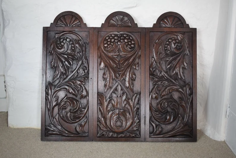 Antique carved oak folding screen, €293.10 available from GrumblaLane on Etsy