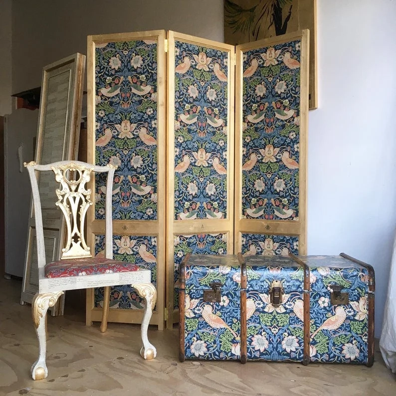 Doillon William Morris wallpaper handmade wooden folding screen room divider, €538.34, available from AMflorence