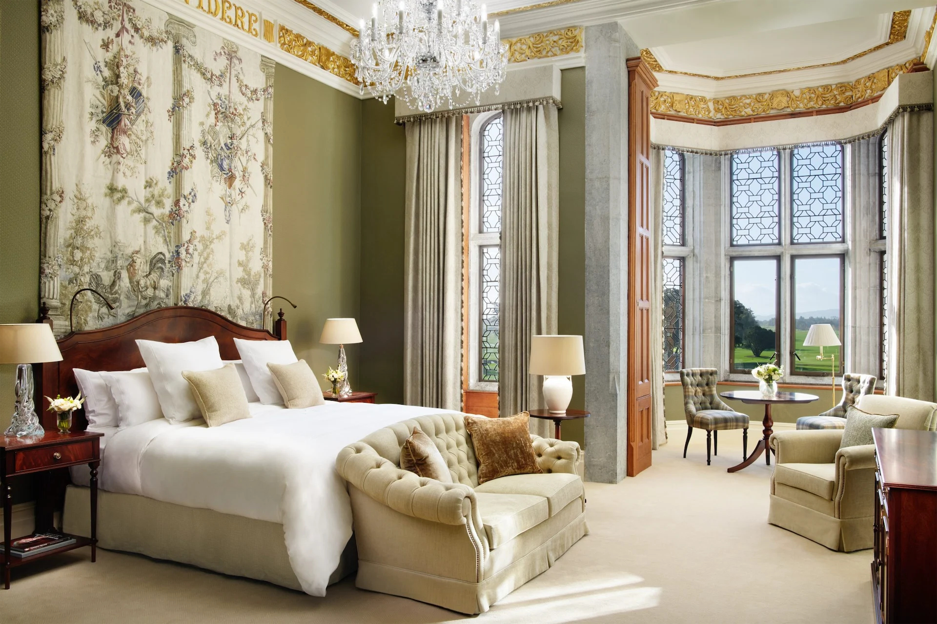 Something catches my eye as I walk into our room at the Adare Manor. That is, something aside from the magnificent view through the period windows, walk-in wardrobe, ginormous bed and bedside tablets for all kinds of light mood settings – it’s not just ‘on and off’ here, folks.