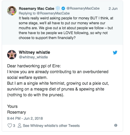 Hanrahan’s tone suggests she feels some degree of reticence about asking her followers for support. It’s not hard to see why. When blogger Rosemary MacCabe set up her Patreon and asked people to consider supporting her output she immediately received criticism.