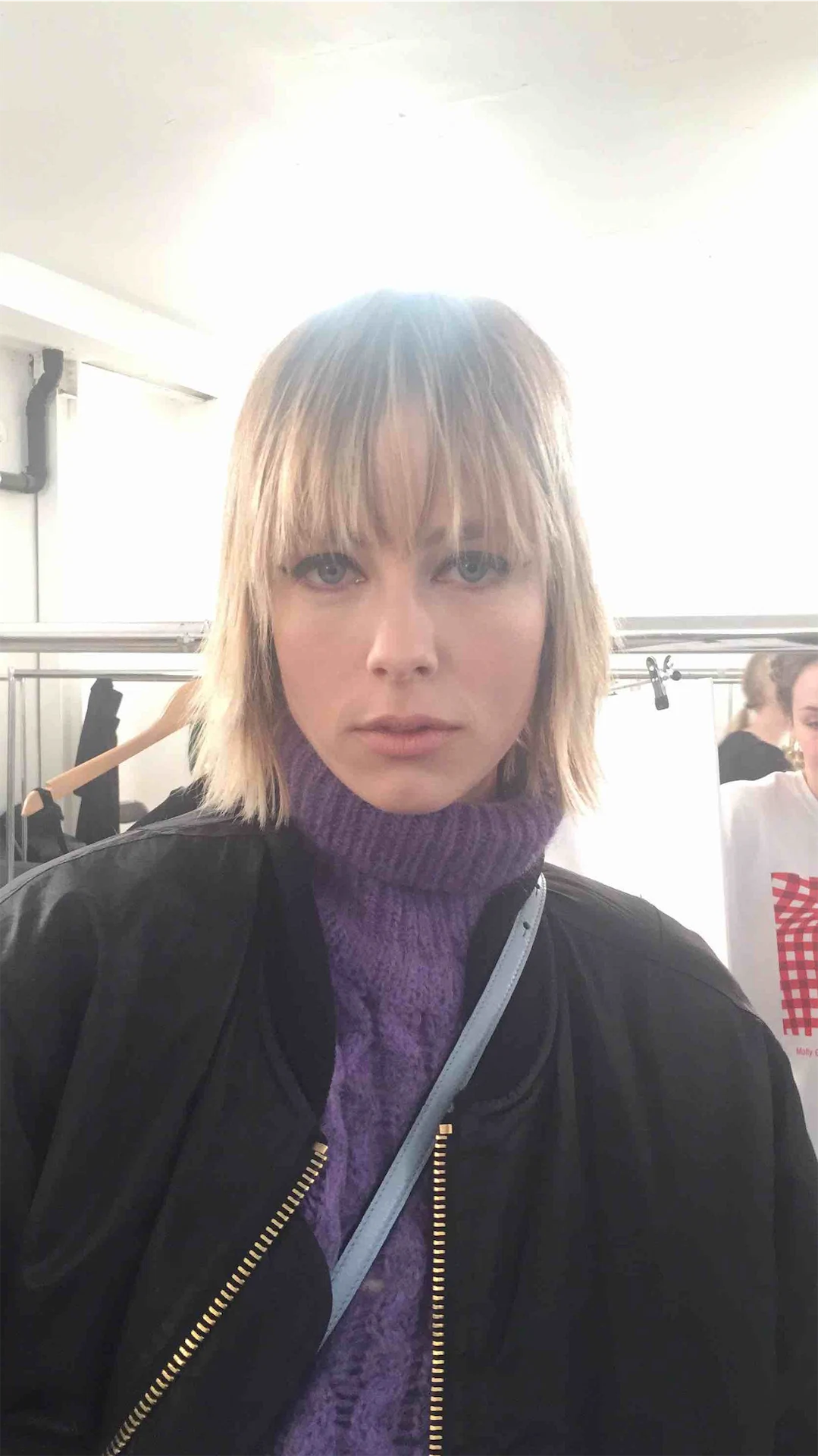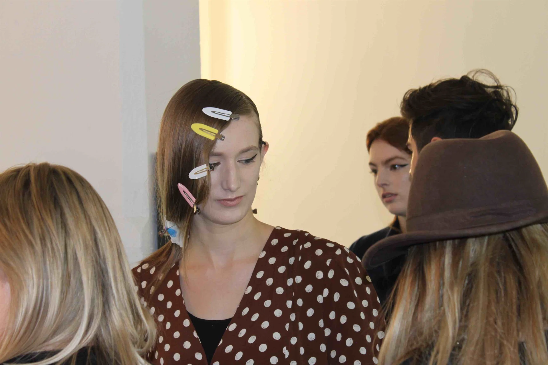 Model Edie Campbell, backstage at Molly Goddard.