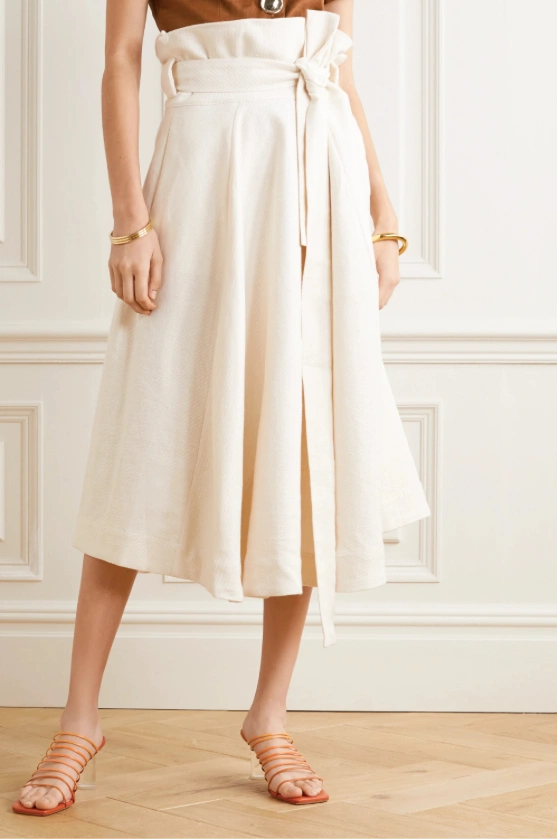 Cream Asha belted linen-blend midi skirt, €267 at Net A Porter