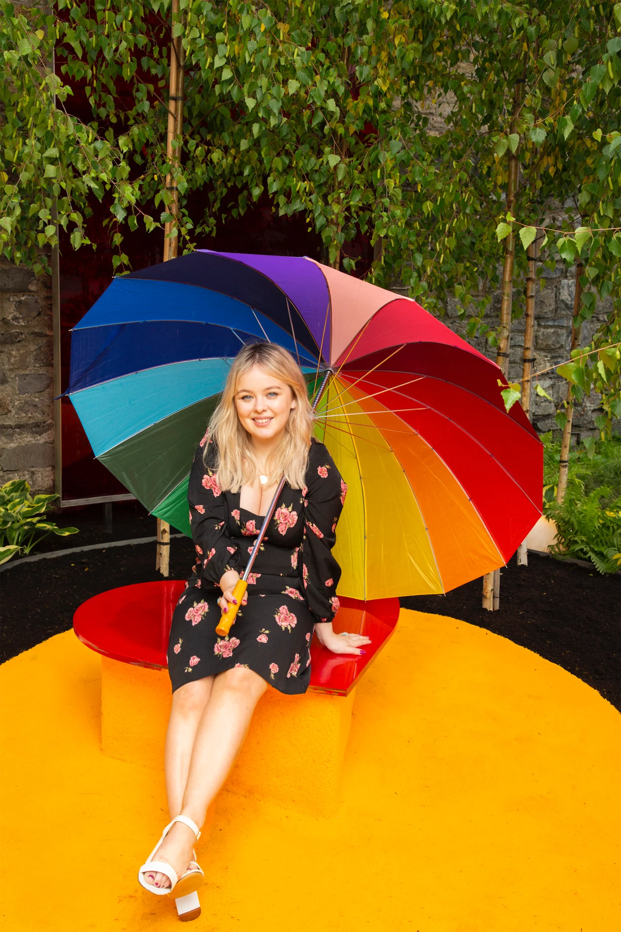 Derry Girls Nicola Coughlan at ‘What If’ show garden in Bloom. Photograph: Anthony Woods
