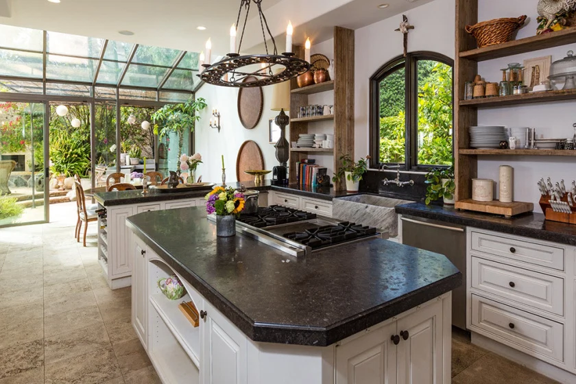A chef’s kitchen with a breakfast nook