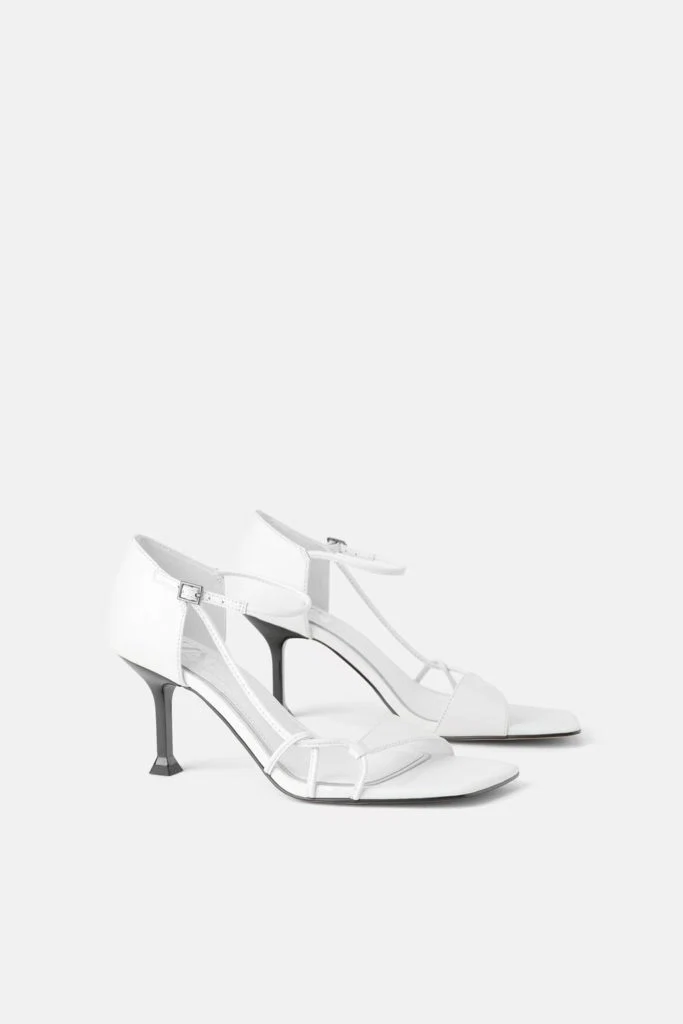 Leather high-heel sandals with heel detail, €59.95 at Zara