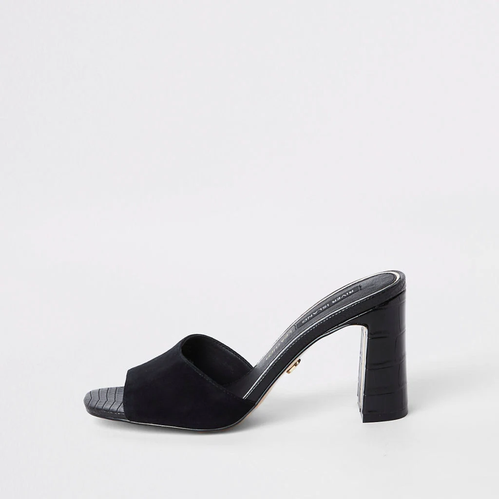 Black leather heel mule sandals, €55 at River Island
