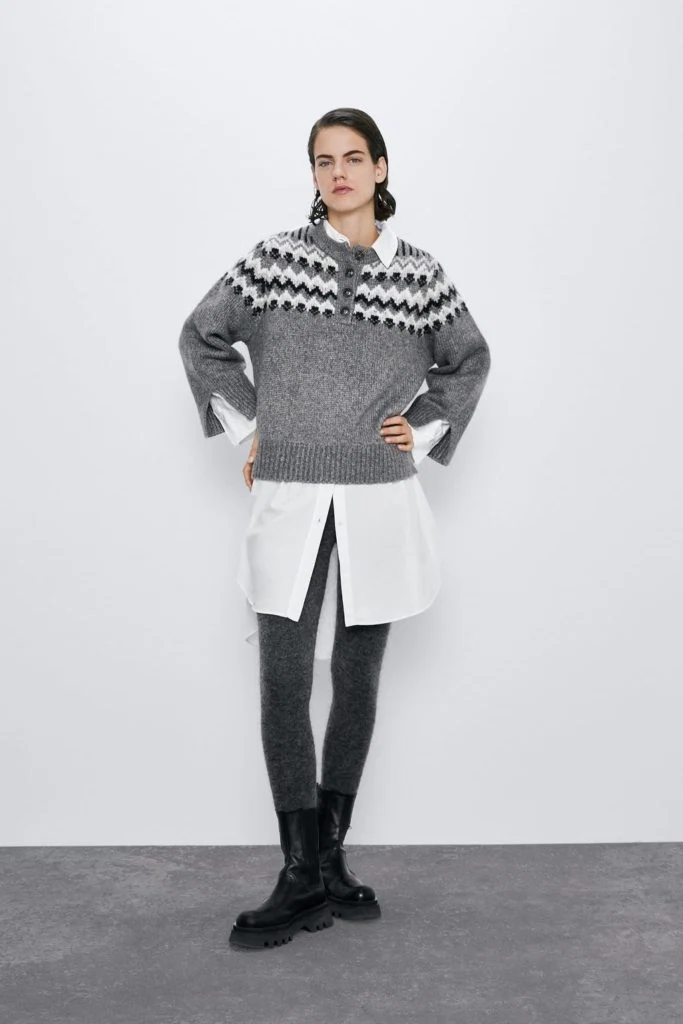 Alpaca wool-blend jacquard sweater, €22.99 from Zara