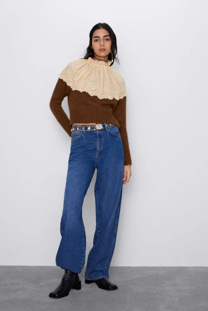 Embroidered contrast sweater, €22.99 from Zara