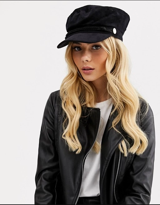 Lipsy velvet cord baker boy hat in black, €24.89 from ASOS
