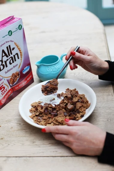 In the mornings, I’m generally a serial rusher rather than a cereal eater. I have two kids to get moving, as well as myself, and we have the typical dynamic of rush, rush, and rush. Breakfast for me is pretty much an afterthought – a latte and a bagel or just some fruit at my desk often has to suffice. The beginning of the year saw me make some righteous resolutions that I haven’t quite managed to make habit yet (what? It’s June?). So I heard of the Kellogg’s All-Bran Five Day Challenge and I elected myself to be the person to try it out. Five days sounds fine – doable, achievable and simple. The facts state that most Irish people would benefit from increasing their fibre intake by around one third to achieve good digestive health*, and that the easiest way to do this is to consume foods rich in wheat bran (such as Kelloggs All Bran), so seeing as it sounds like an easy challenge with a myriad of benefits, I decided to embark.