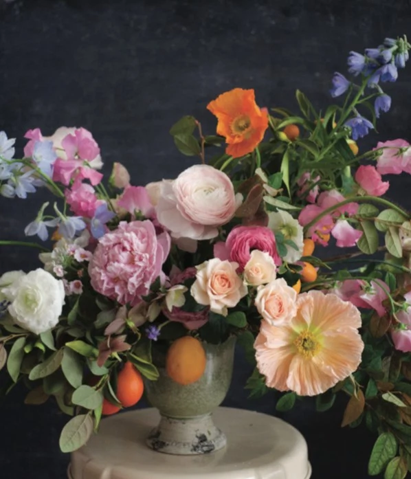 Kiana likes to follow the curves and shapes of the blooms, creating a look that’s both refreshing and timeless, the natural flow of the flower from the vase highlighting its fleeting, evanescent nature. ?I like to think about my arrangements as if I just picked them from the garden and dropped them in the vase,? she explains. ?While it’s a bit more complicated than that, I think that my use of asymmetry, as well as unique floral varieties and fruits, is very natural. True ?garden style?.?