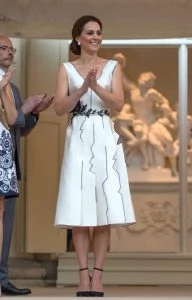 The first day of the tour concluded with a garden party in the Orangery in azienki Park to celebrate the Queen’s birthday. Kate changed into a slightly more contemporary dress for the occasion.