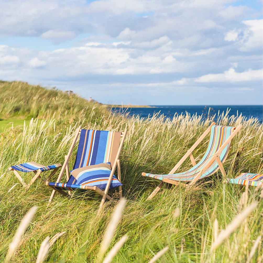 What is not to like about the traditional beechwood deckchairs with washable covers in an array of French stripes?