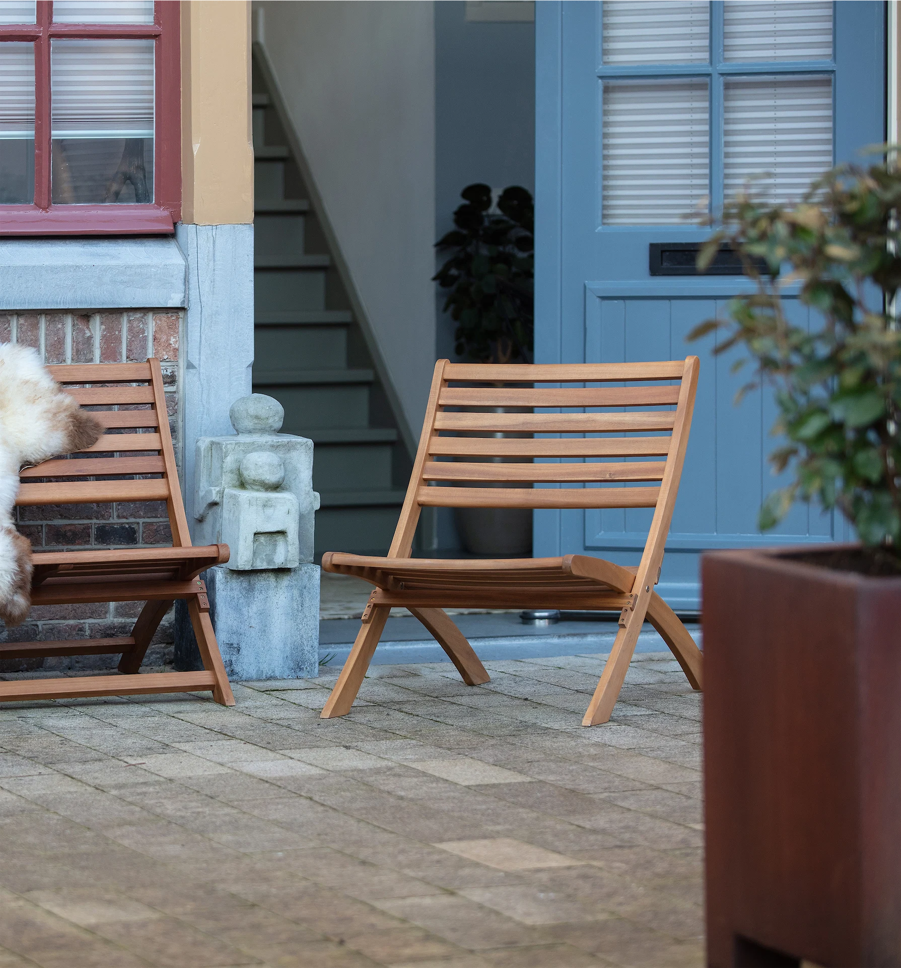 A Scandinavian spin on the slatted deckchair, these thoughtfully designed seat are made of larch timber that will fade to a pale silver over time are ideal for laid-back lounging.
