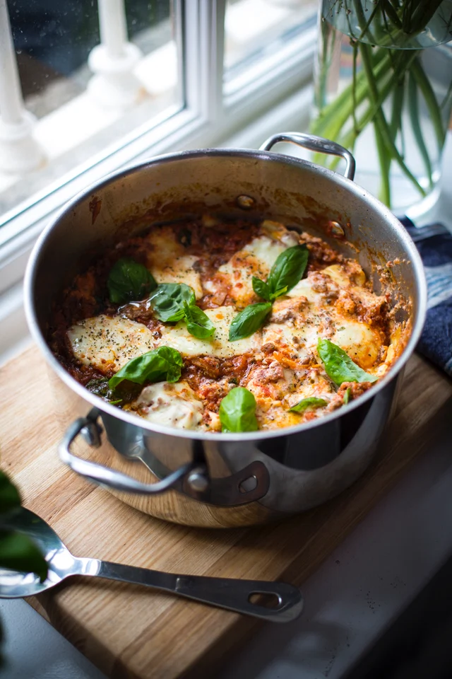 “This is not, by any means, an authentic lasagne recipe but it has all the important components; rich, meaty layers, cheese sauce and pasta sheets (without all the washing up). Make sure to get fresh lasagna for this as the dried ones won’t cook properly.”