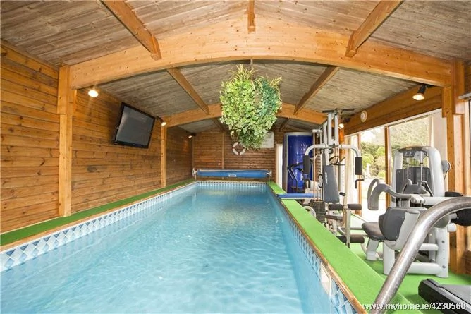 This five-bedroom house at 15 Homeleigh can be easily labelled the most luxurious residential property in Dublin 15. Some notable features include a private indoor swimming pool, an all-weather tennis court, a private bar and games room, a five-seater hot tub, and a four-seater sauna. The entrance hallway includes marble flooring, while a sweeping marble staircase leads to the gallery landing. The large kitchen overlooks the rear garden and comes with all mod-cons; including a Neff American fridge-freezer and a matching integrated dishwasher. The house is fitted with CCTV, electric security gates, and includes a detached double garage.
