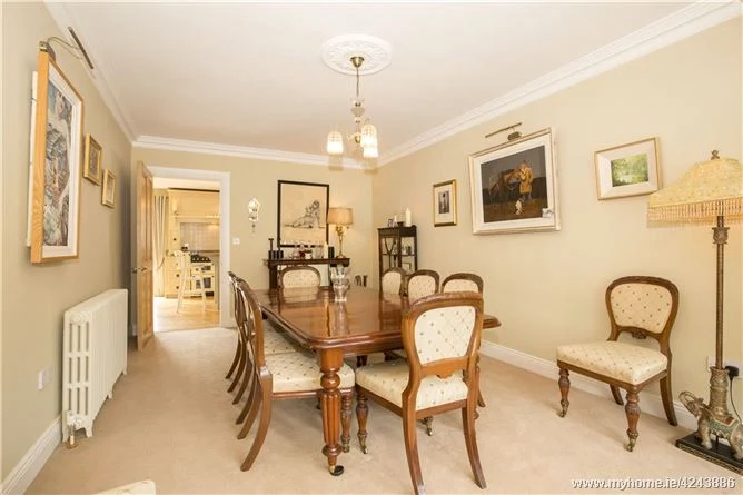 Arguably the cosiest of our three dreamy Castleknock properties, this four-bedroom house at 43 Deerpark Road would make a lovely family home. With four reception rooms and an inviting kitchen-cum-breakfast room, there is plenty of space for children, teenagers and guests. This kitchen is the heart of this home, with glass doors opening to the sunny rear garden and three reception rooms. It comes with a freestanding Cannon range-style cooker; with dual electric ovens, a grill and a six-ring gas hob. There is an integrated fridge-freezer and dishwasher, as well as access to the ‘Boot Room’ and utility room. Off-street parking is available for up to six cars, and a mature south-facing garden is located to the rear.