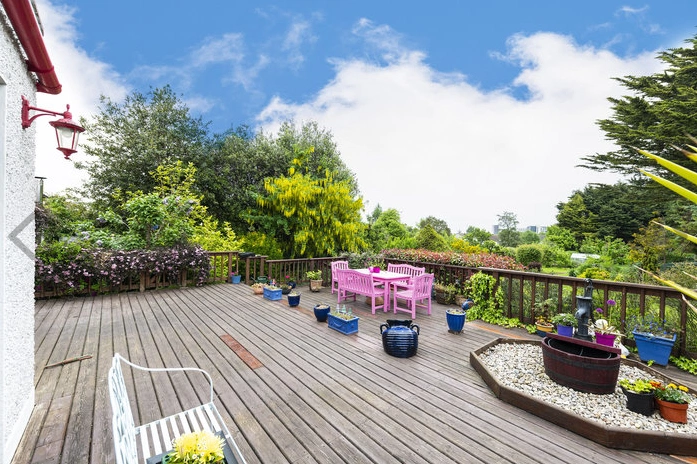 This five-bedroom home on Sandyford Road sits on grounds of approximately 225 square metres (or 2,420 square feet), with a large, secluded garden located to the rear. Measuring over 320 feet in length, it boasts numerous trees, flowerbeds and shrubbery. The garden also features a raised decking area; perfect for al fresco dining after a long day of pruning plants. The property’s front garden is bright and full of greenery too. Carefully groomed bushes line the driveway and the perfectly manicured lawn. A side-garage is also included, giving you ample space to store your tools and equipment.