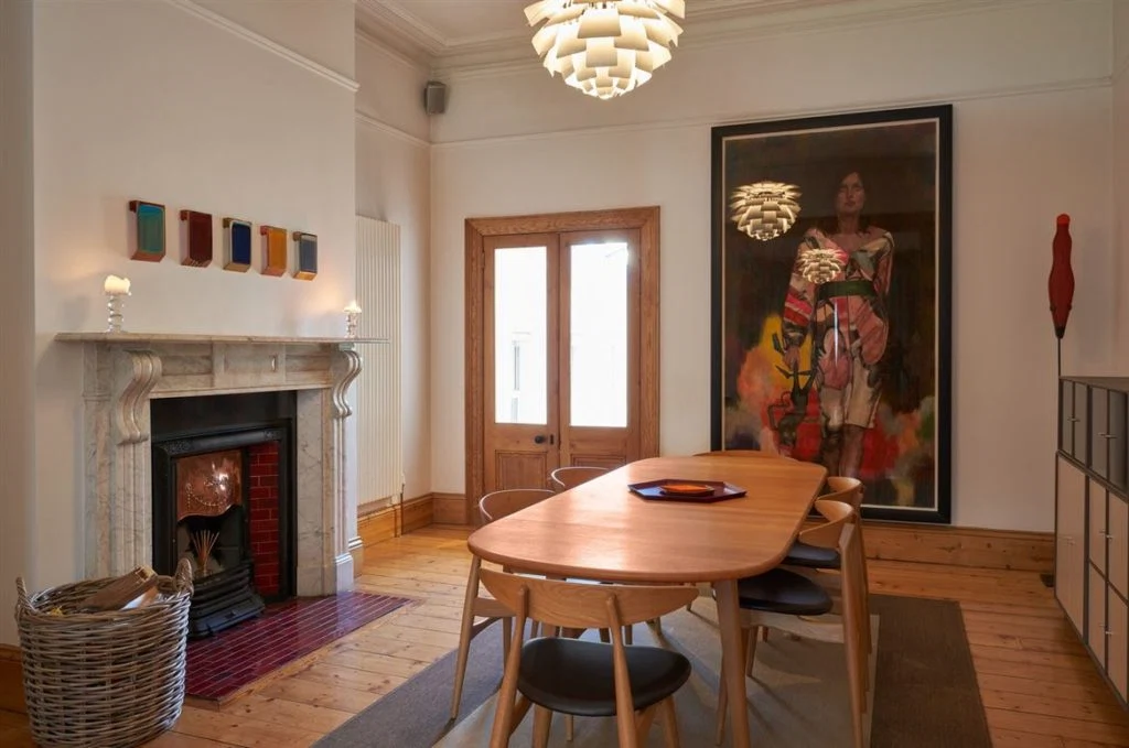 This characterful artwork is showcased throughout the entire property, with the dining room being particularly vivid. Again, there is an original fireplace, ceiling coving, wooden floors and downlights.