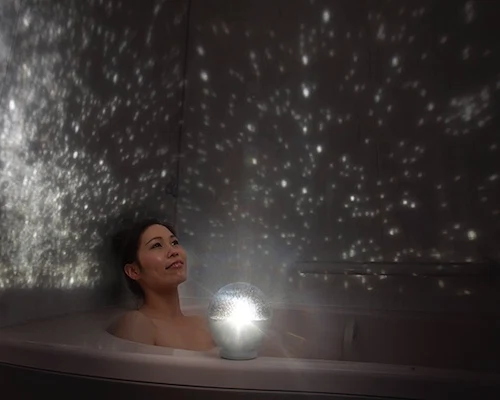As if you needed to take another excuse to take a long, luxurious, calming bath. The next time your tub calls your name, consider adding this little light source to the mix, for a distinctly magical, “otherworldly” feel.